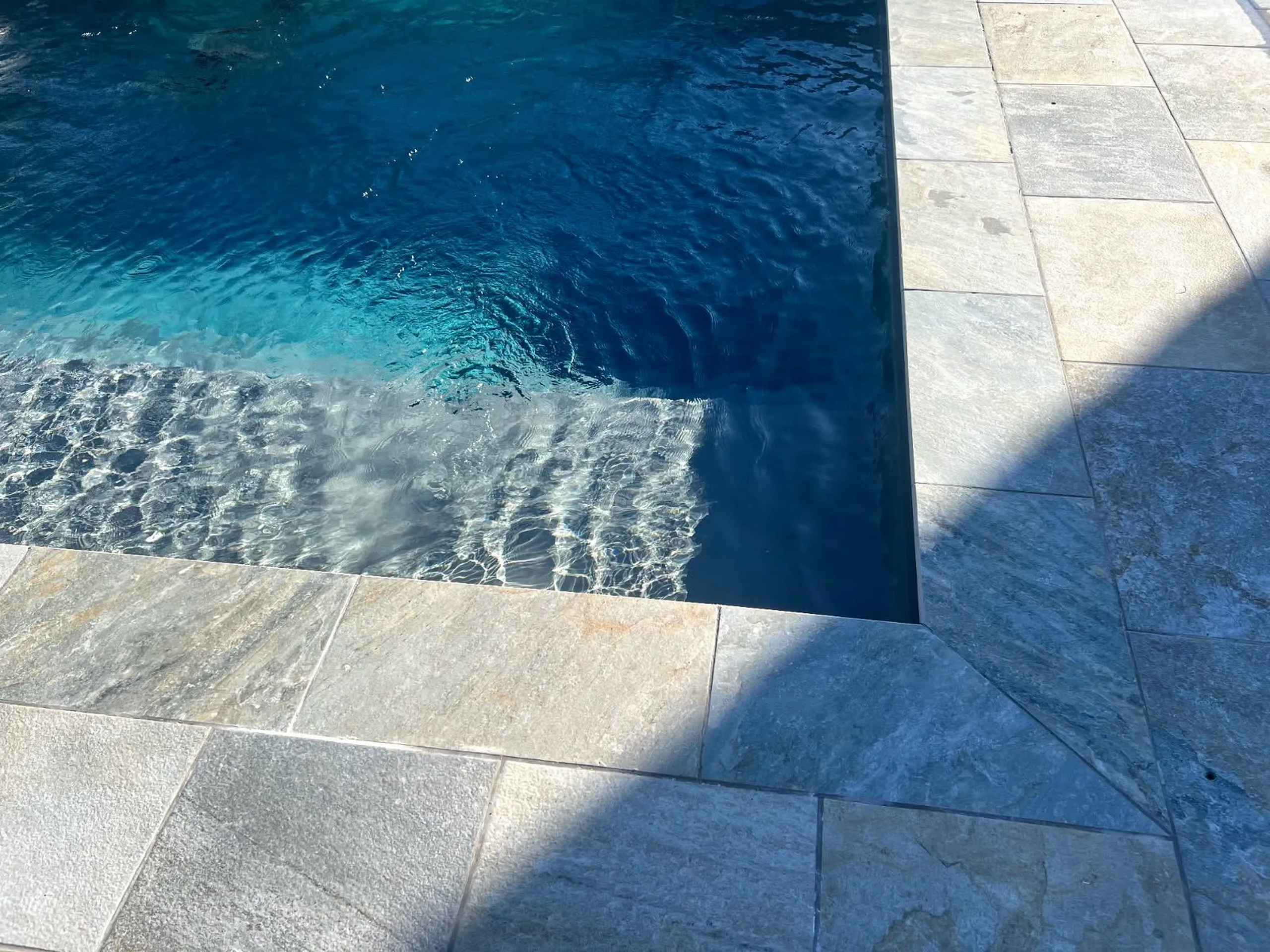 Les margelles piscine en grès cérame effet Bali offrent une finition unique et naturelle qui sublime les abords de votre bassin. Inspirées des pierres balinaises, elles se caractérisent par des nuances harmonieuses allant du vert d’eau au gris, avec des reflets ocre, dorés, rosés et rouille, reproduisant la beauté de la nature.